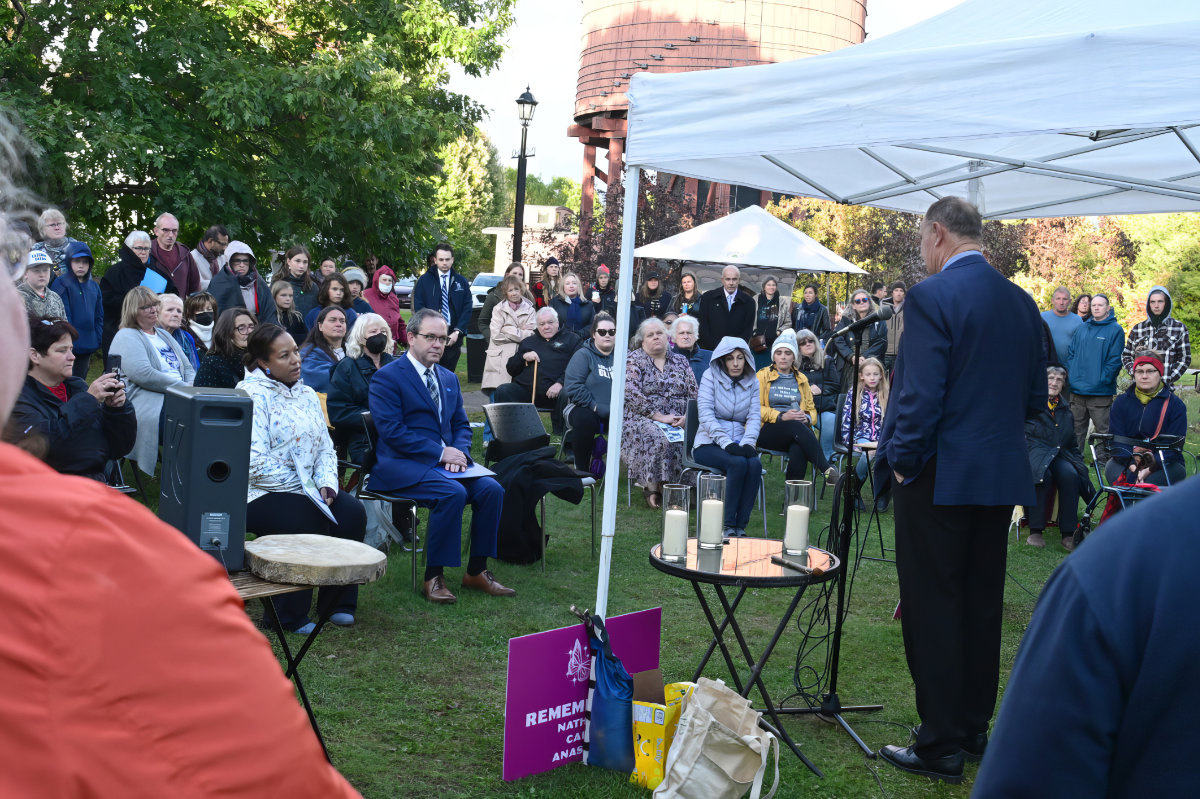 MPP John Yakabuski and Minister Charmaine Williams pay their respects.