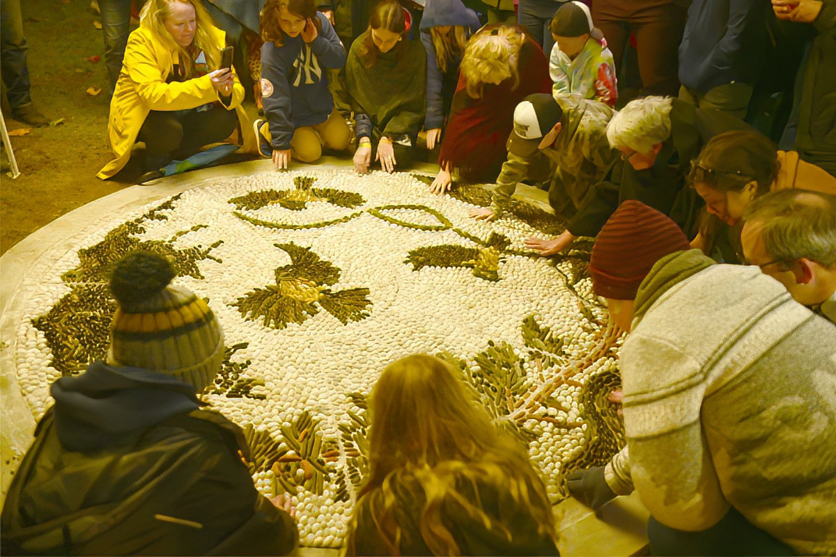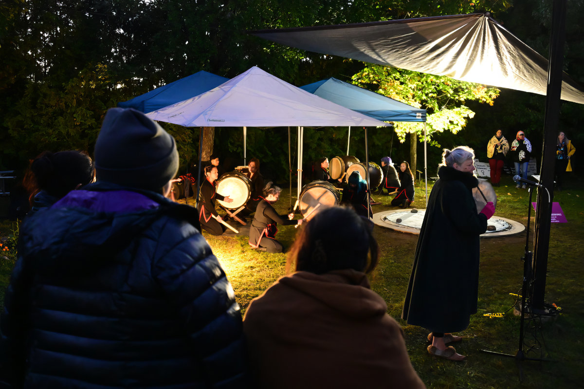 Roberta Della-Picca drumming and singing in the suddenly cold night.